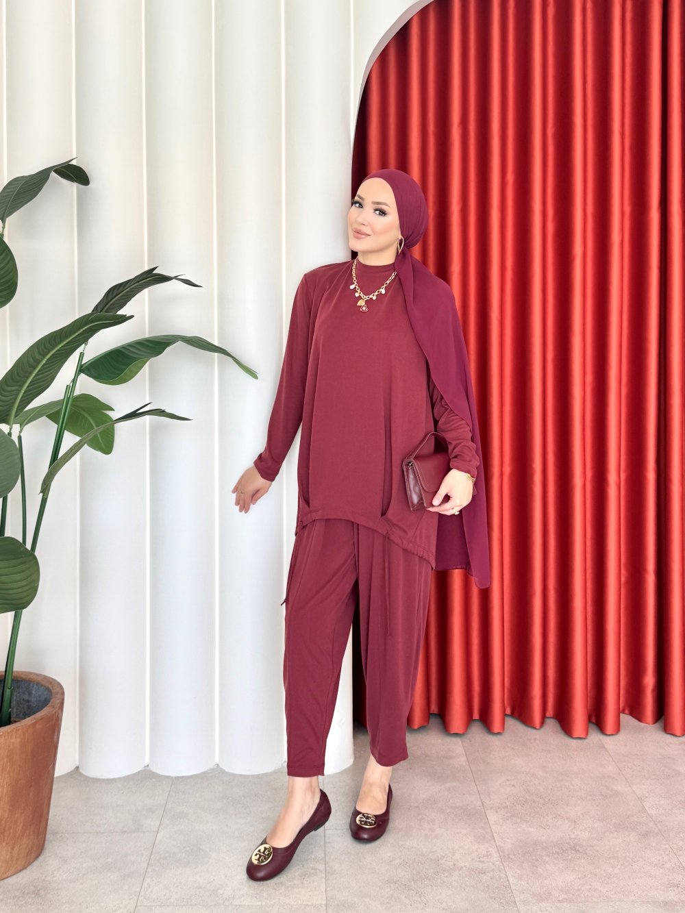 Alina Takım Bordo Bordo