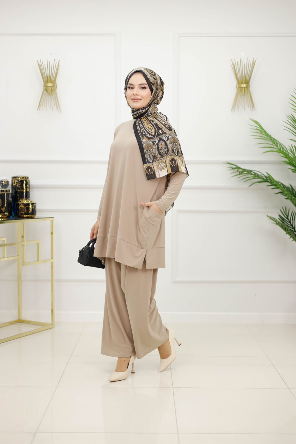 Çok sevilen kalıbı ve modeliyle sandy kumaş Almina  takım stoklarımızda...
