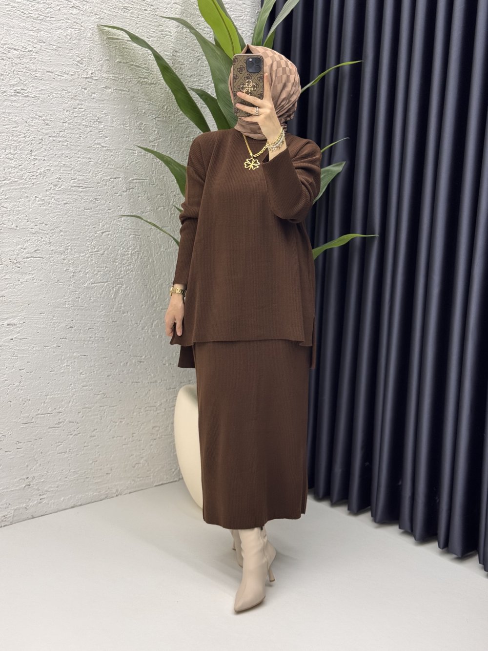 Asel Etekli Takım Tesettür Giyim Kahverengi