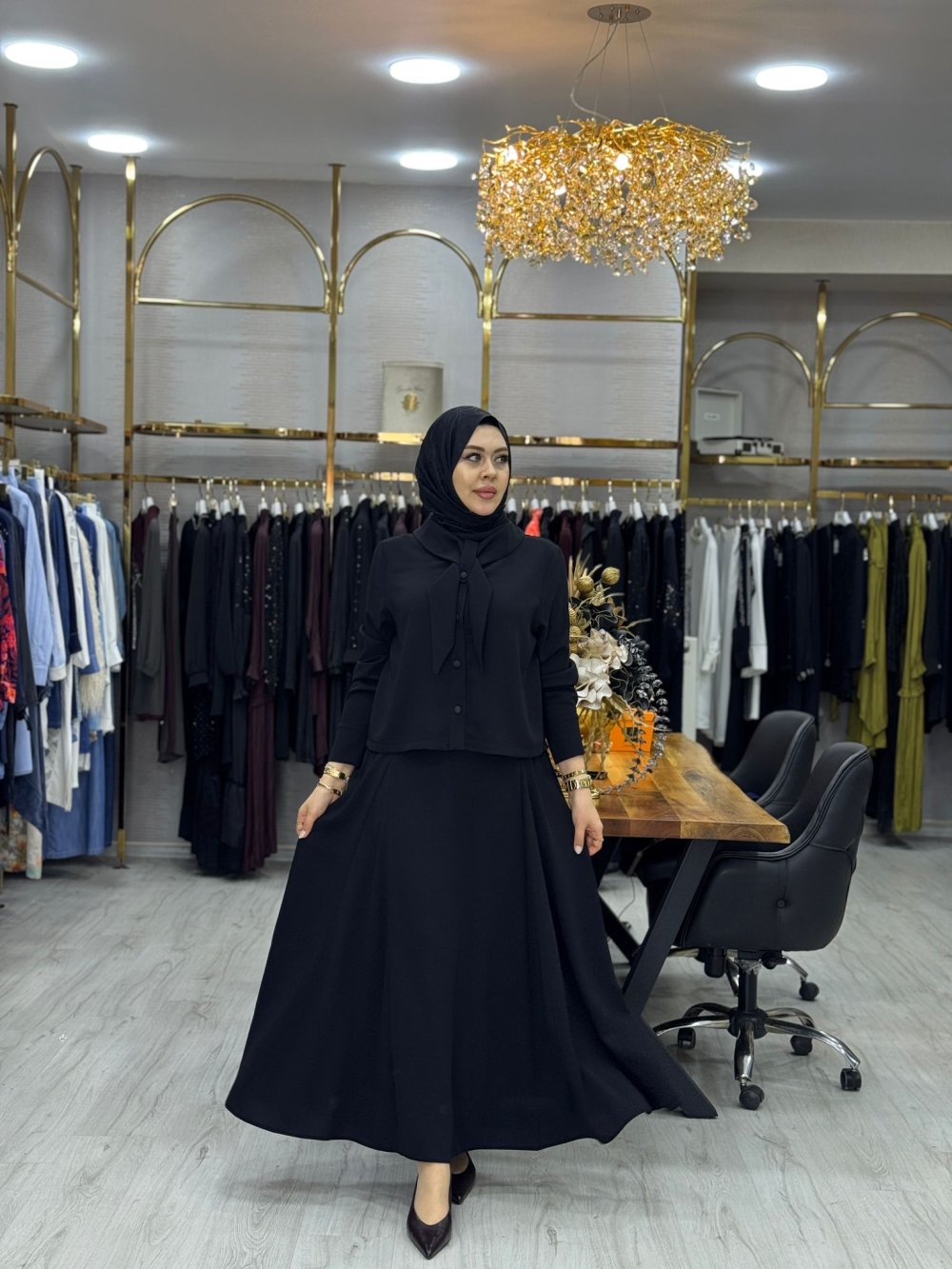 Kumaşı kreptir. Etek beli fermuarlıdır.