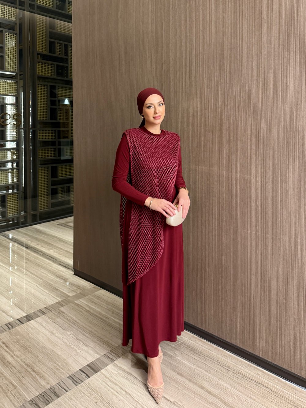 Atiye Elbise Bordo Bordo