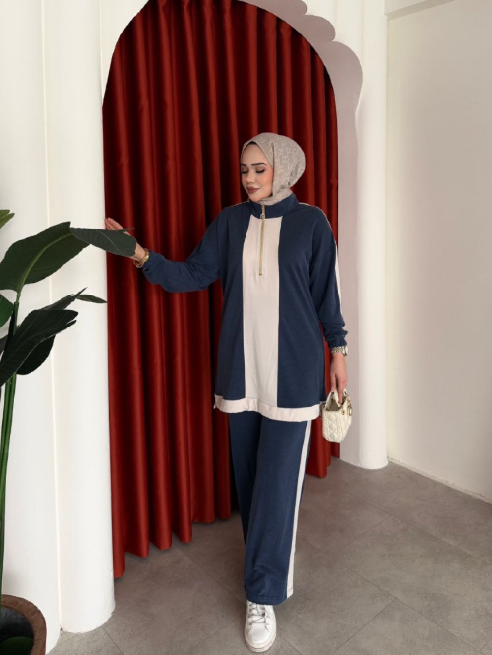 Tunik yakası fermuarlıdır.