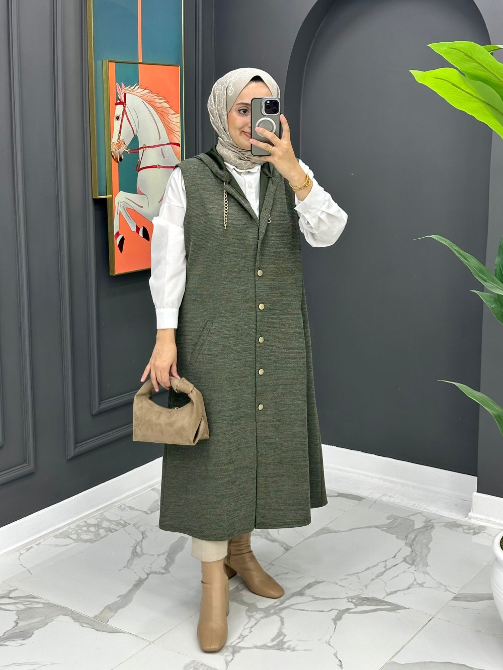 Aysel Uzun Yelek - Haki Haki