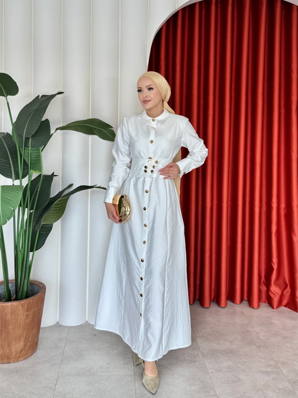 Elbise Önden Gold Düğme Detaylıdır.