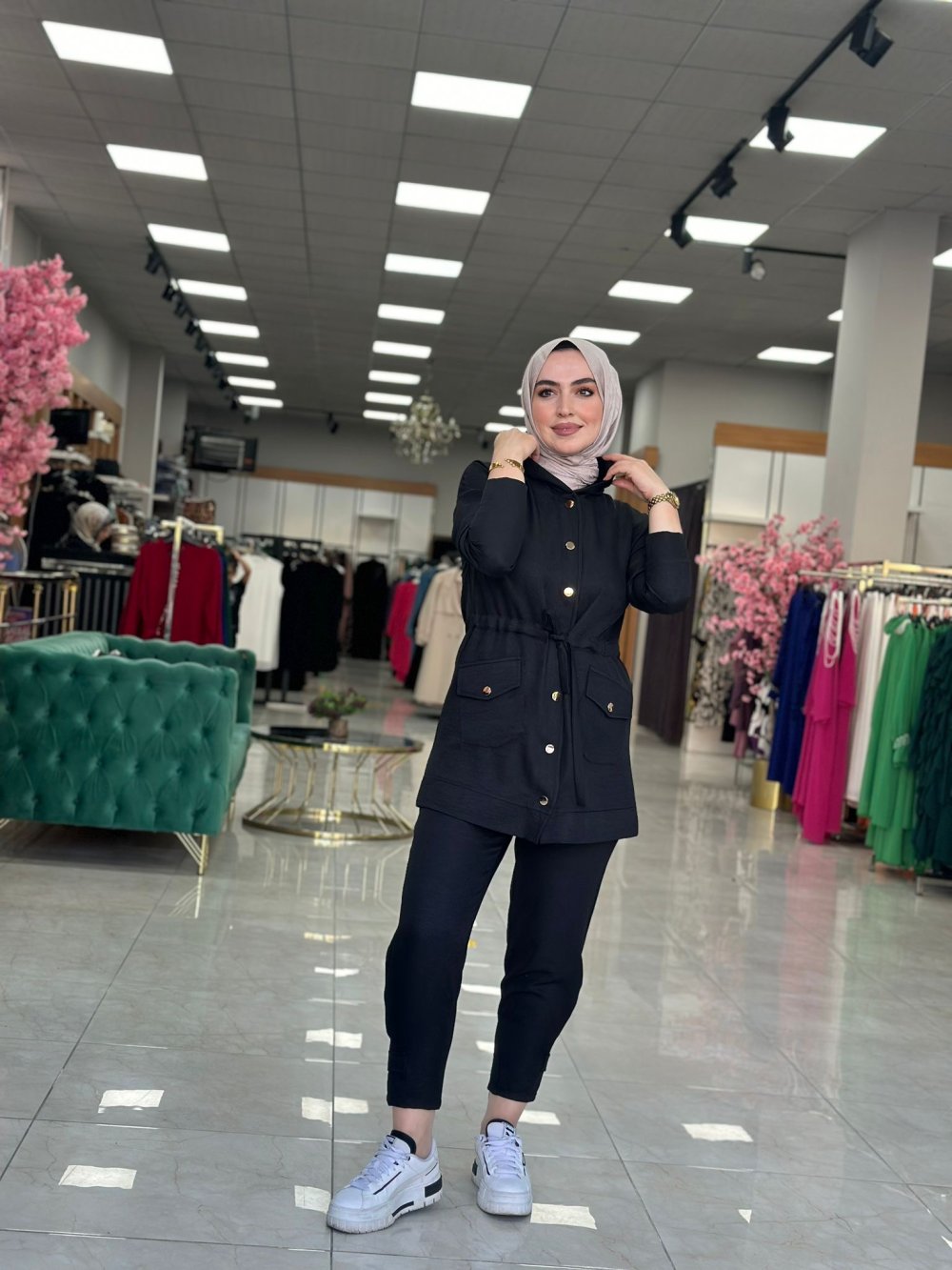 Kumaşı melanj ketendir. Pantolon beli lastiklidir. Ceplidir.