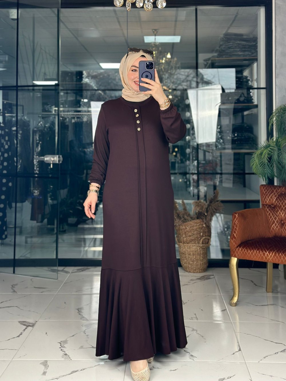 Azel Elbise Kahverengi Kahverengi