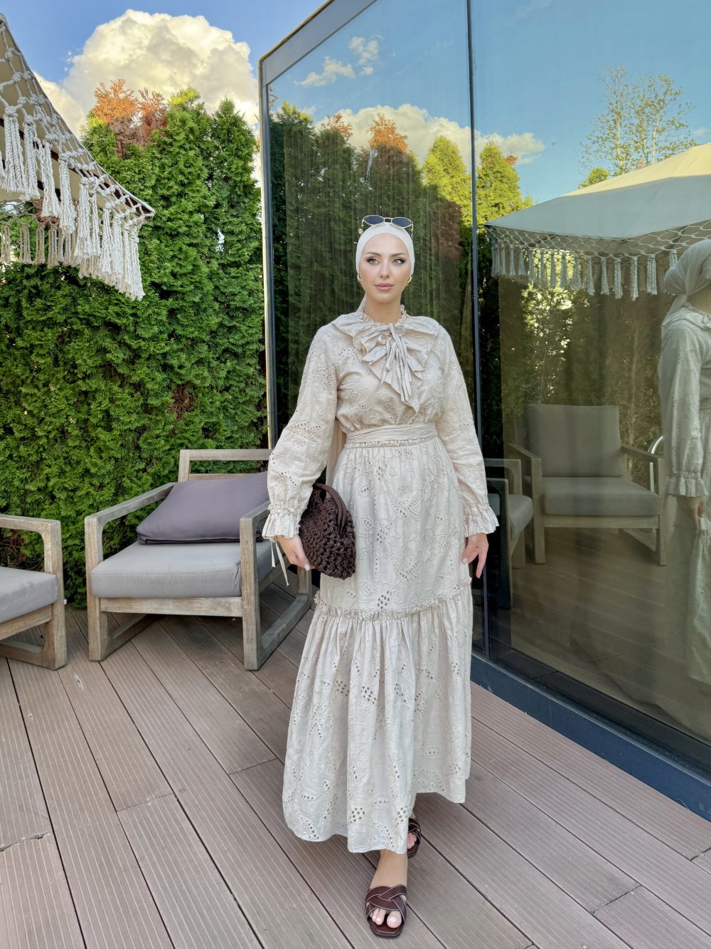 Elbise Yakası İp Ve Fırfır Detaylıdır
