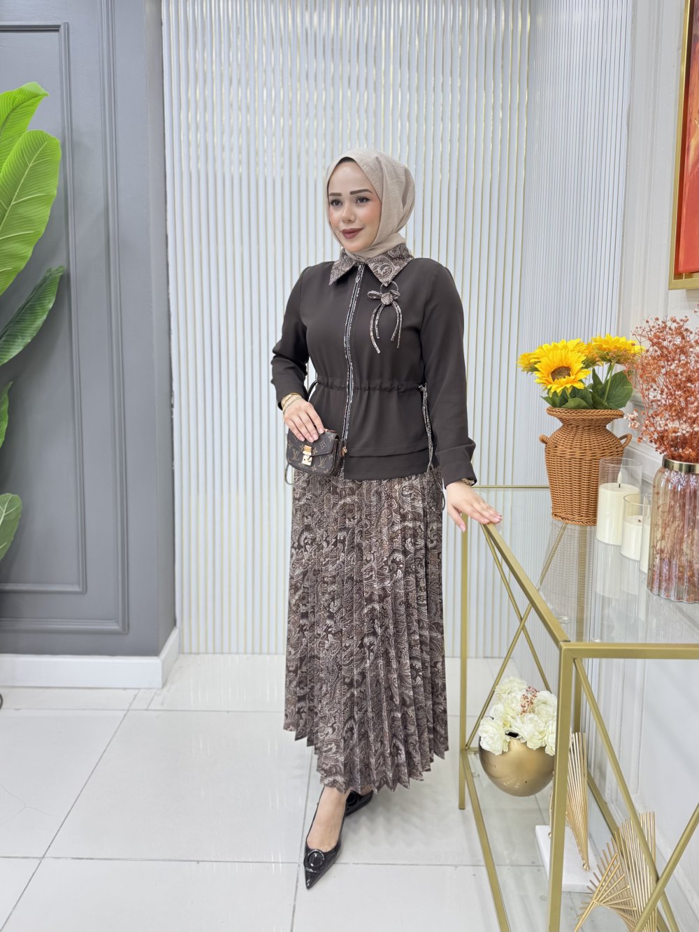 Bahar Etekli Takım Kahverengi