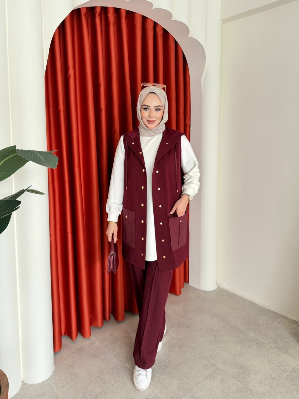 Berfin Üçlü Pantolon Takım Bordo Bordo