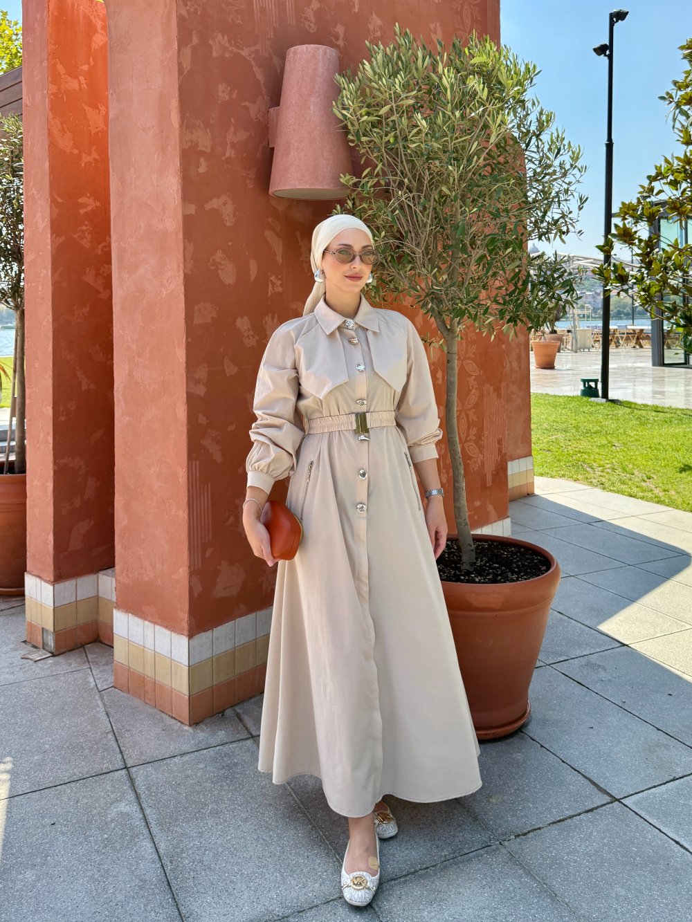 Berna Trenç Elbise Bej Bej
