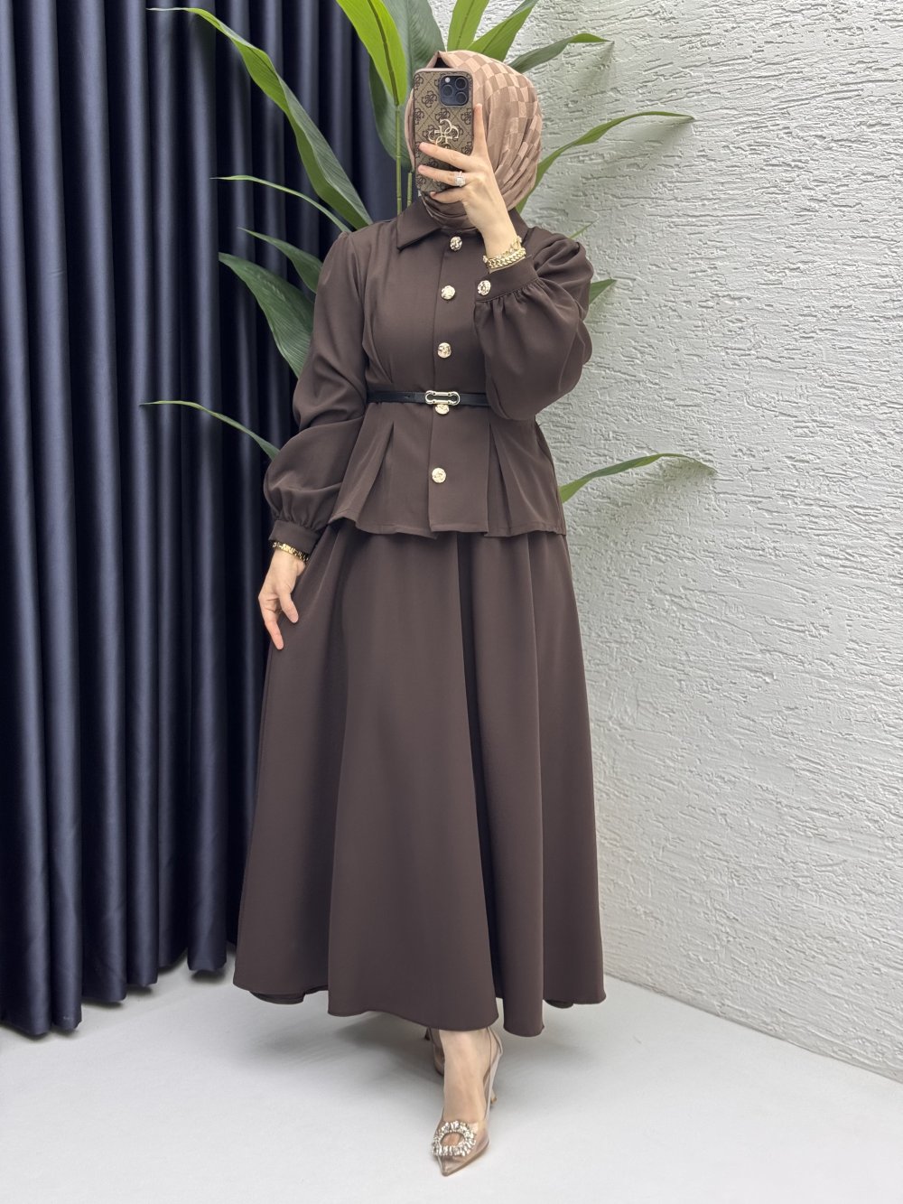 Bihter Etekli Takım Tesettür Giyim Kahve