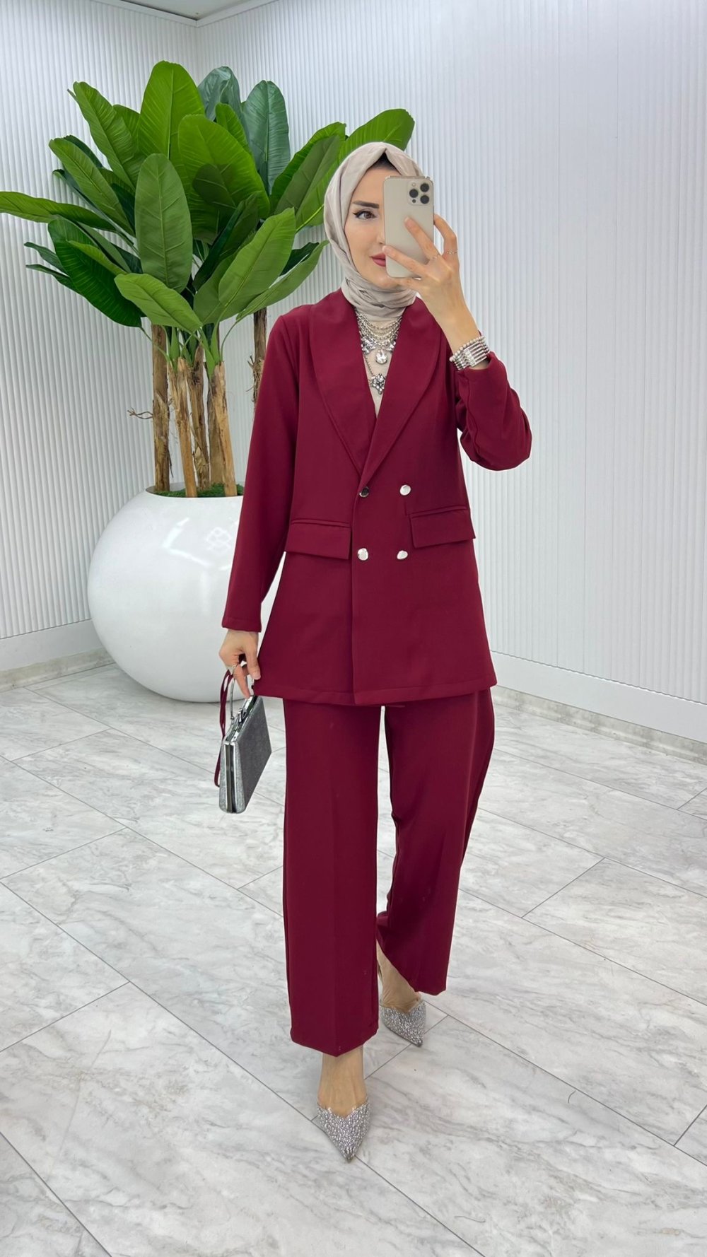 Bordo Hande Ceket Takım Tesettür Giyim
