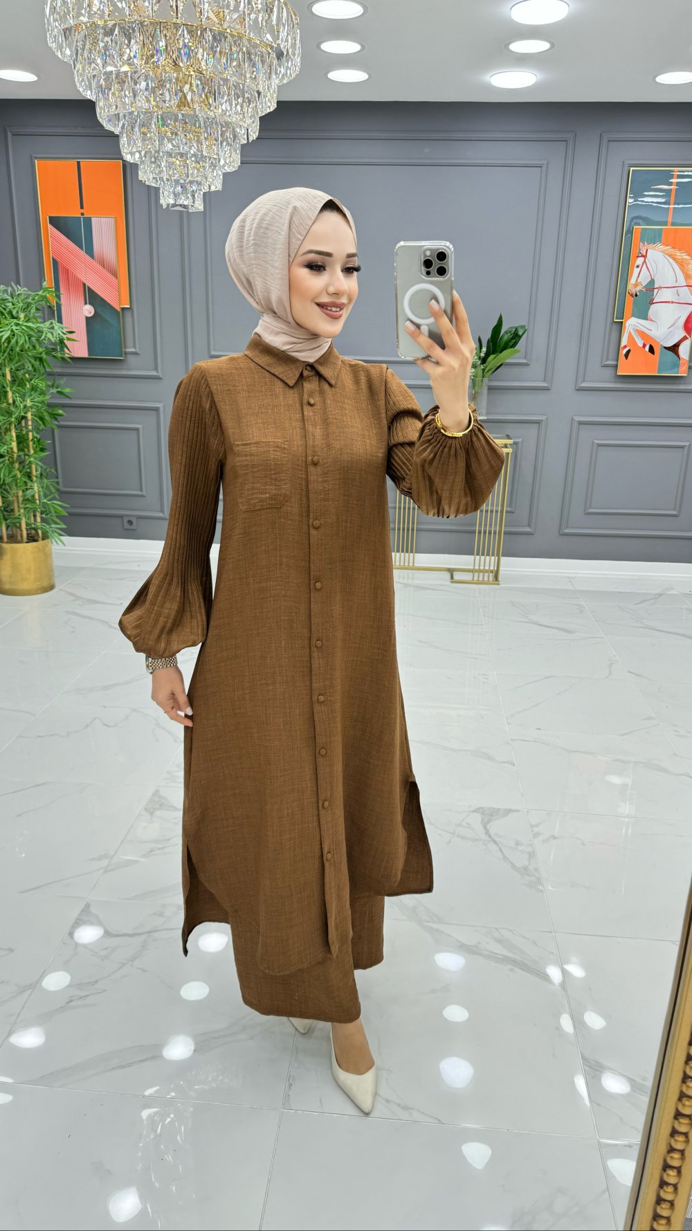 Elbise Yarıya Kadar Düğmelidir.