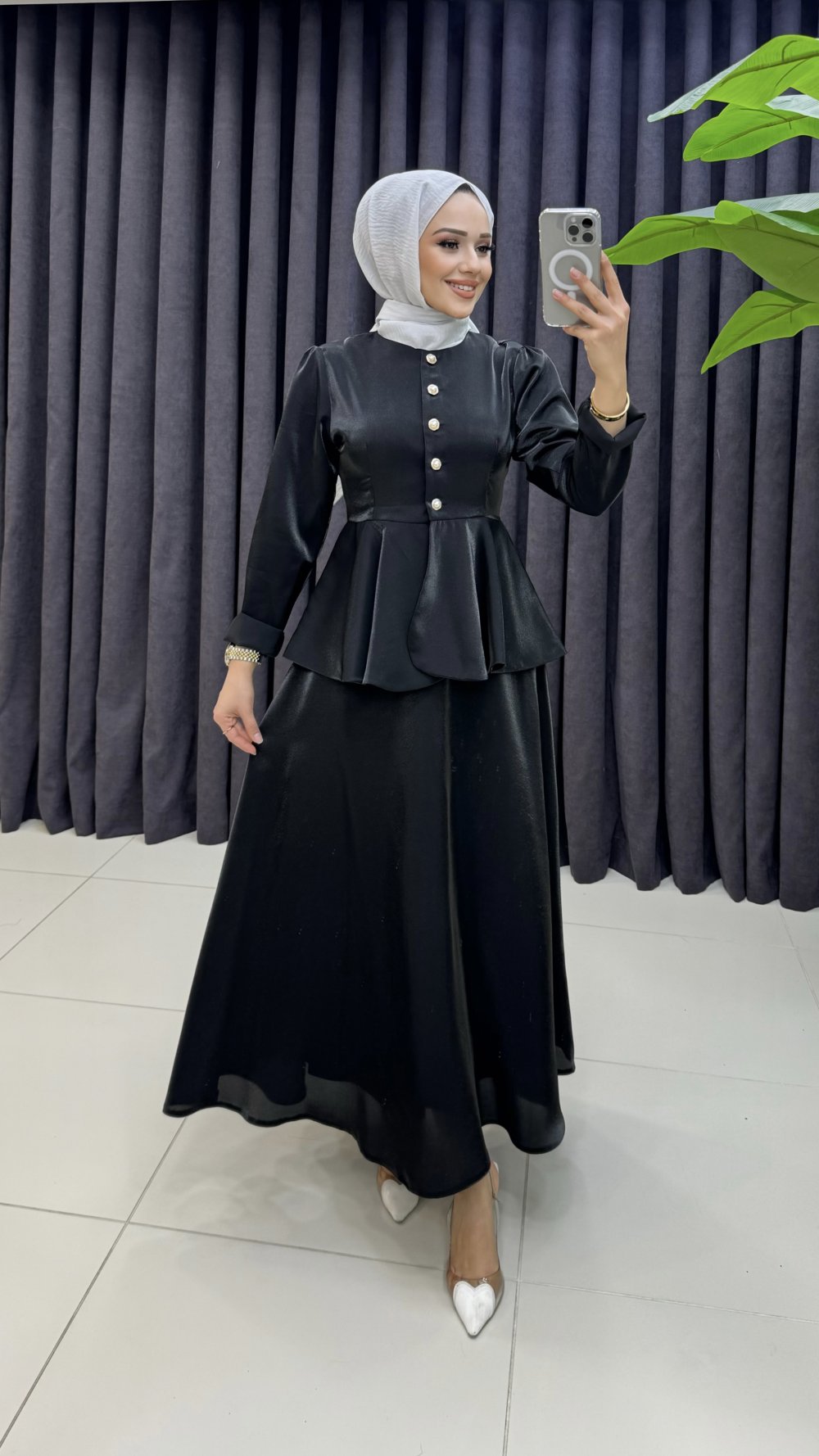 Elbise Yarıya Kadar Düğmelidir.