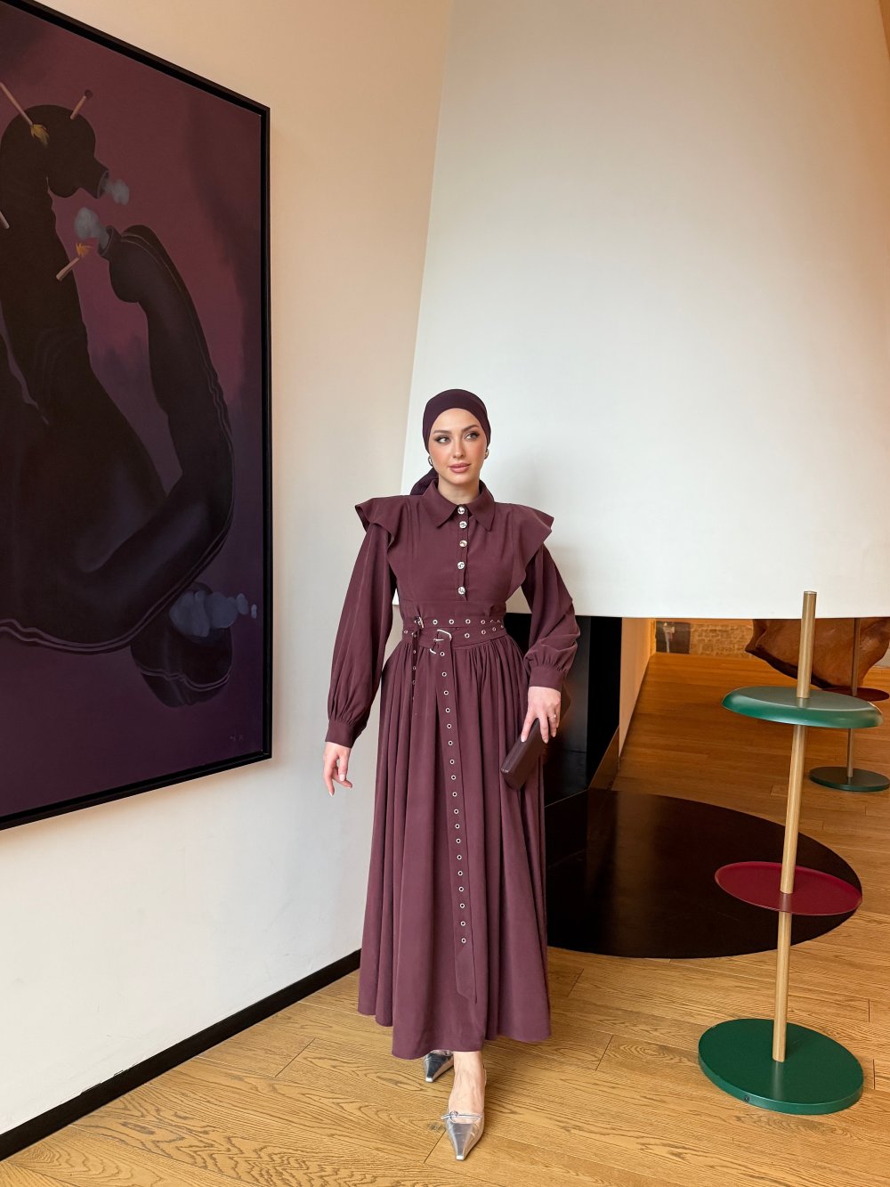 Elbise Kuş Gözü Kemer Detayı Mevcuttur.