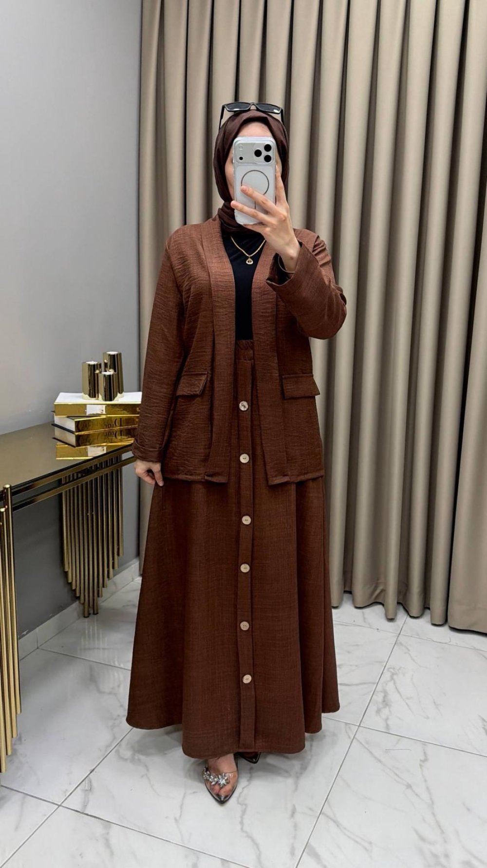 Ceketli Etekli Takım Kahve Kahverengi