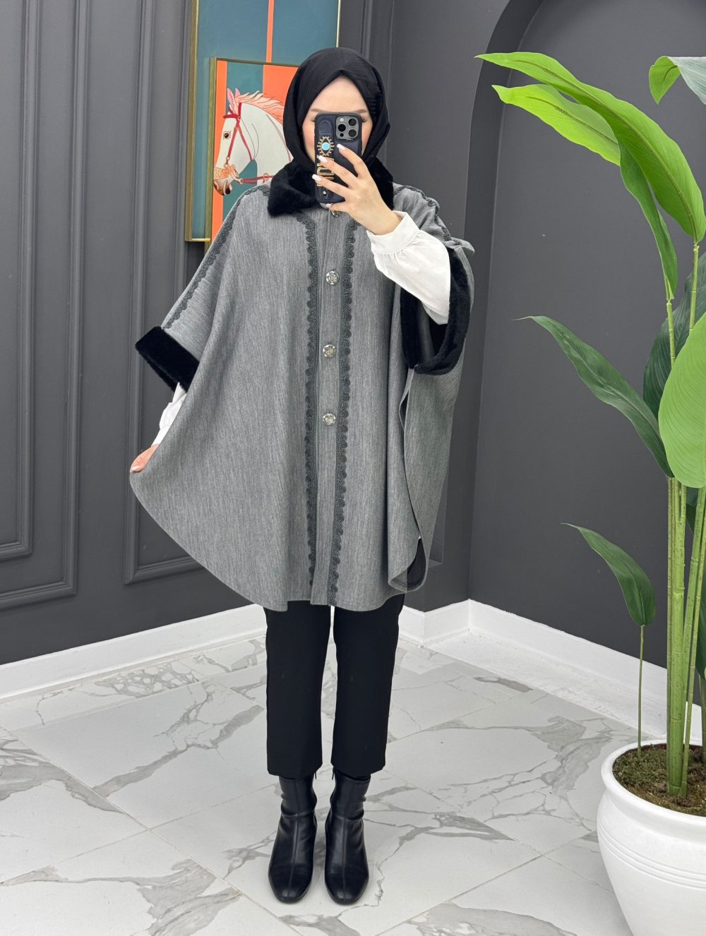 Çelik Örme Panço - Gri Gri
