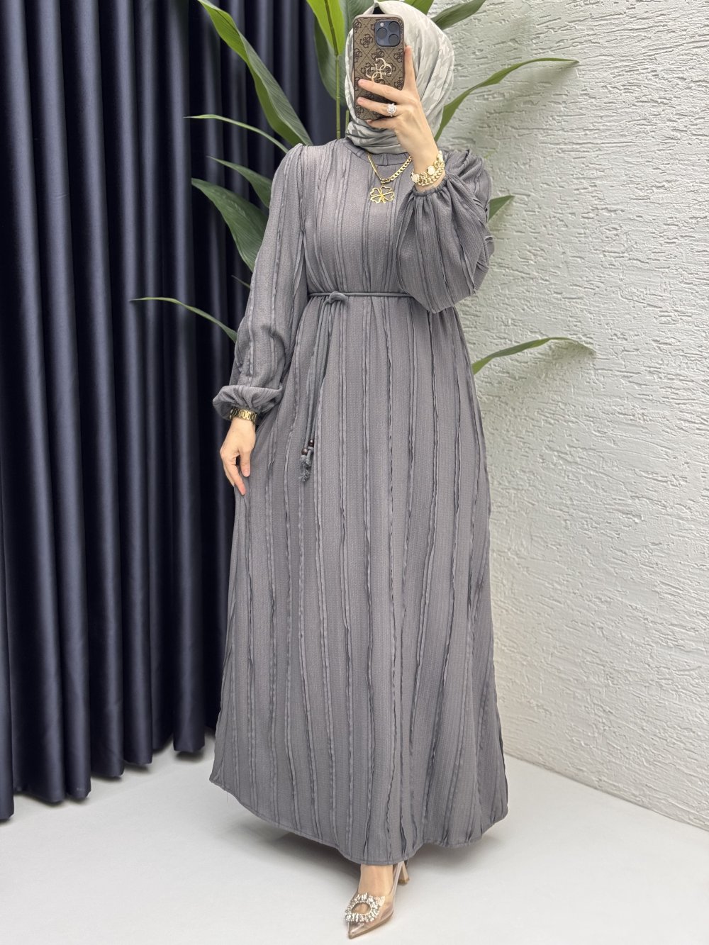 Cevher Elbise Tesettür Giyim Gri