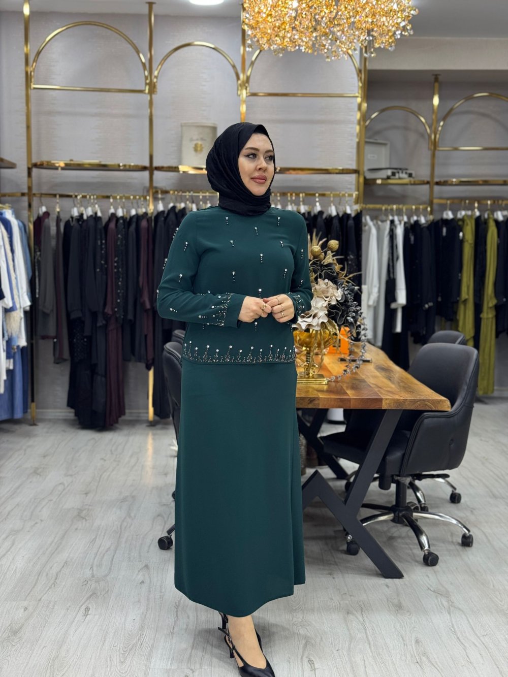 Kumaşı suzanna kumaştır. Etek beli lastikli değildir. Tunik arkası