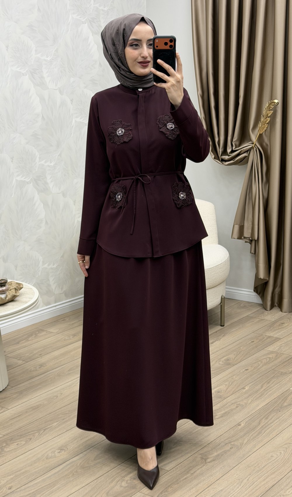 Çiçek Etek Takım,hem iş hem de günlük hayatınızda rahatlıkla tercih edebileceğiniz çok yönlü bir parçadır. Şıklığı konforla buluşturan bu tasarım, sezonun en gözde modellerinden biri olacak