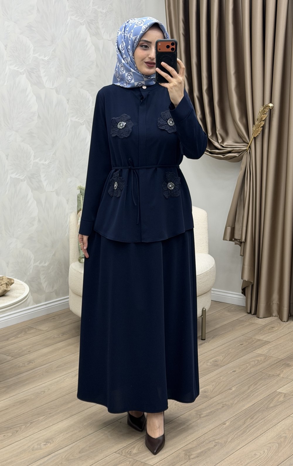 Çiçek Etek Takım Lacivert