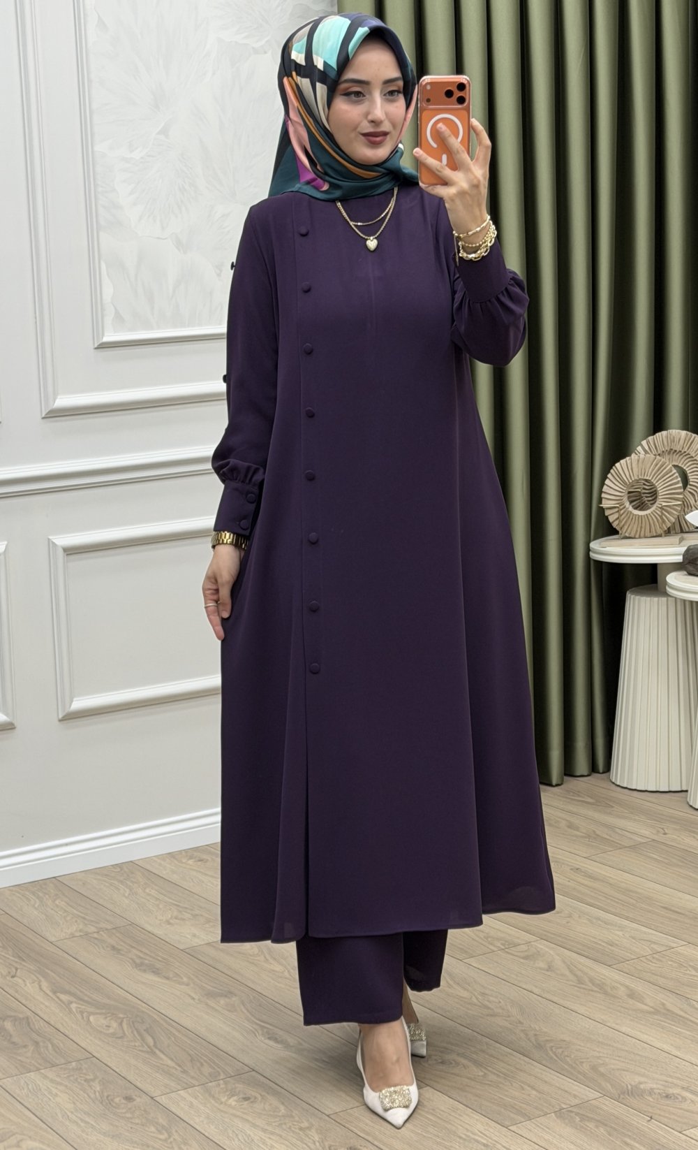 Çiğdem Takım,hem iş hem de günlük hayatınızda rahatlıkla tercih edebileceğiniz çok yönlü bir parçadır. Şıklığı konforla buluşturan bu tasarım, sezonun en gözde modellerinden biri olacak