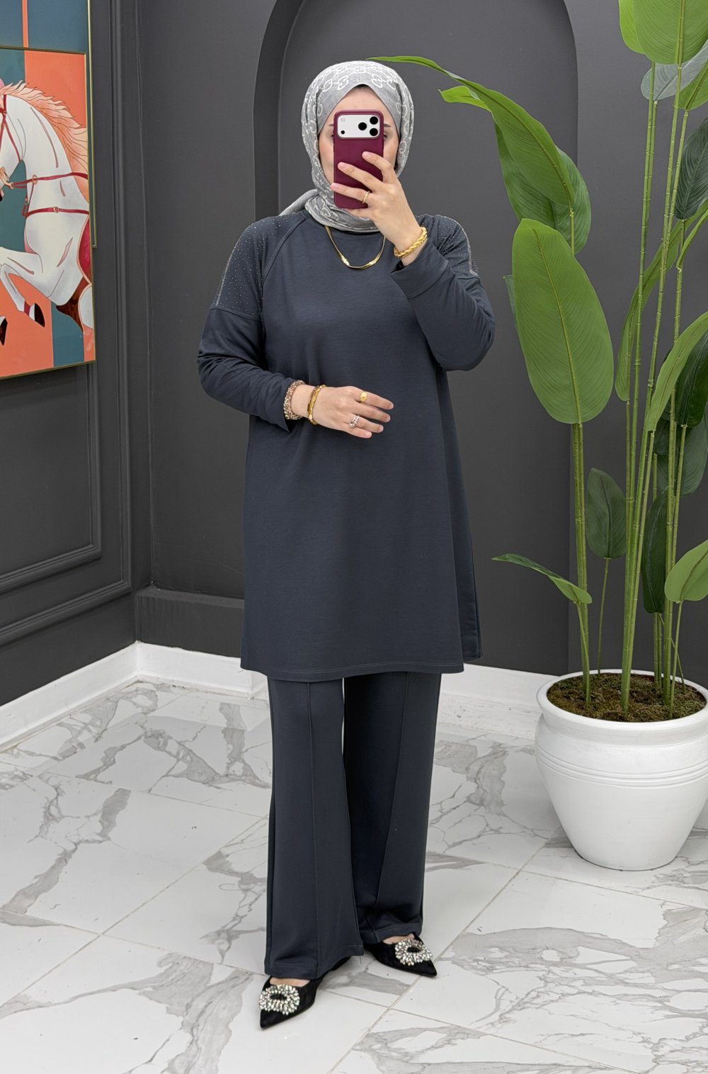 Derin pantolonlu takım - Gri Gri