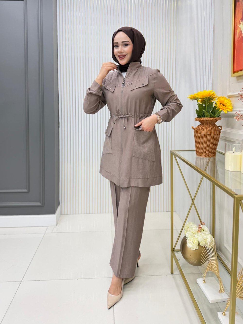 Dilara Tunik Takım Koyu Vizon