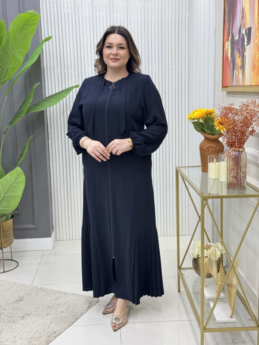 Boydan boya fermuarlıdır.