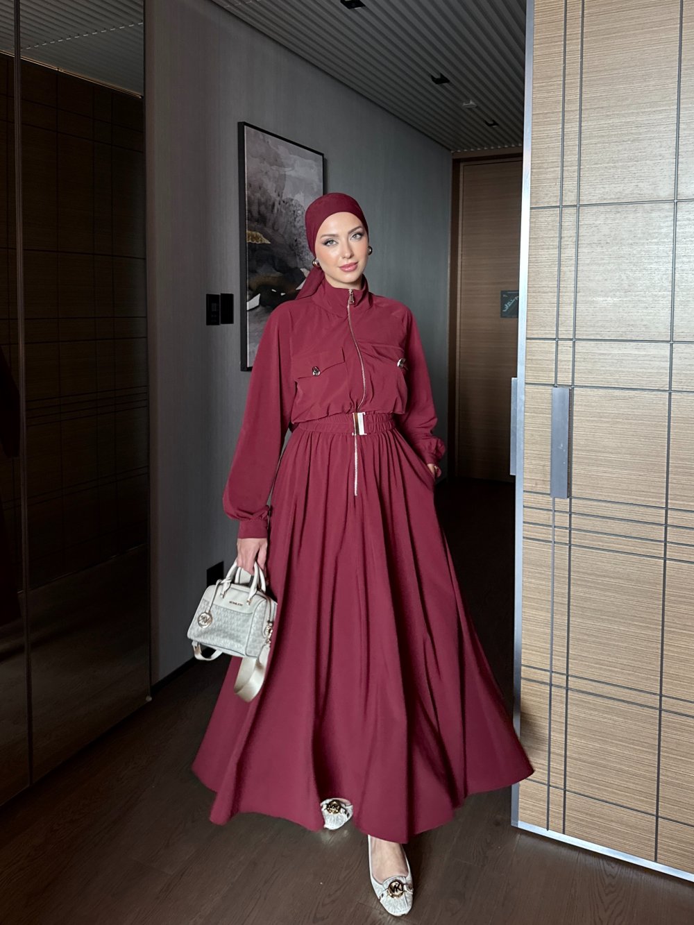 Dilber Trenç Elbise Bordo Bordo