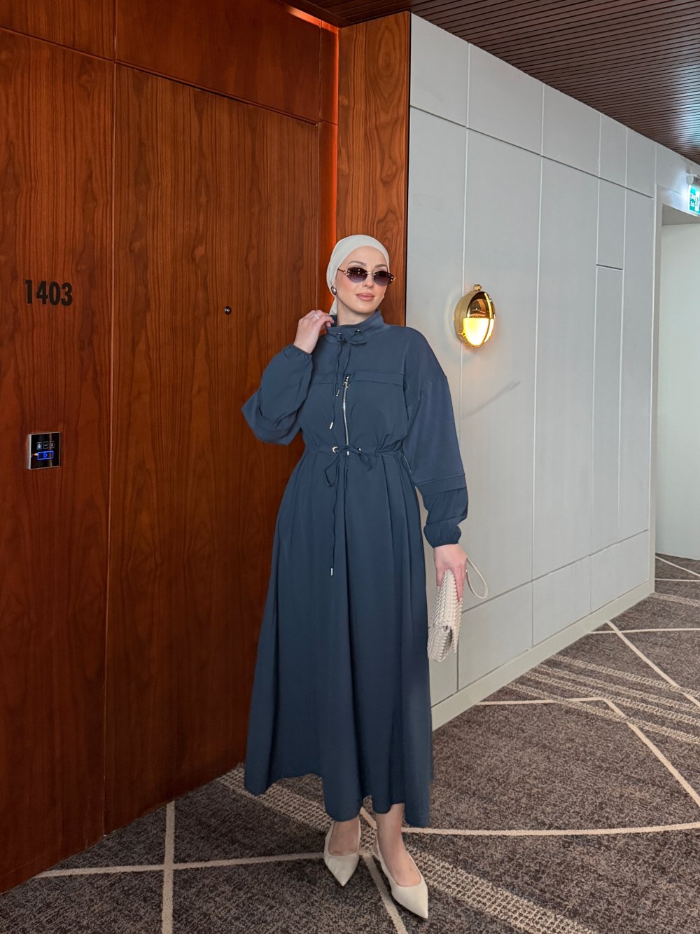 Elbise Göğüsten Bel e Kadar Fermuarlıdır.