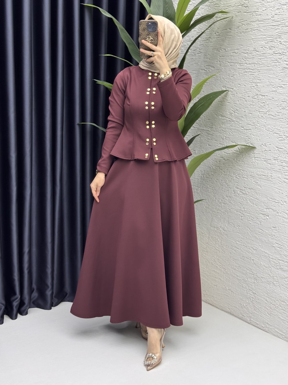 Eflal Etekli Takım Tesettür Giyim Bordo