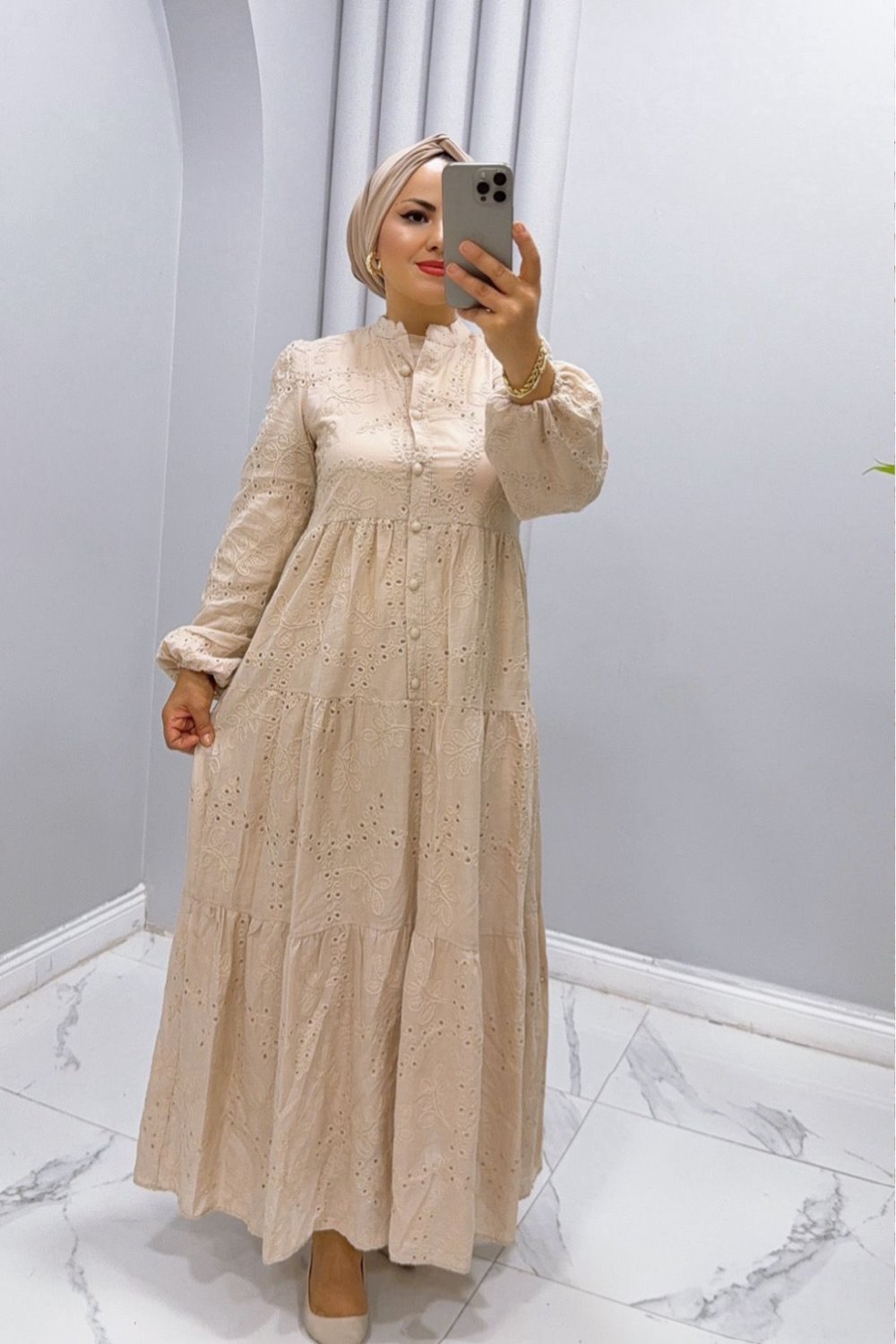 Elbise Dantel İdil Vizon