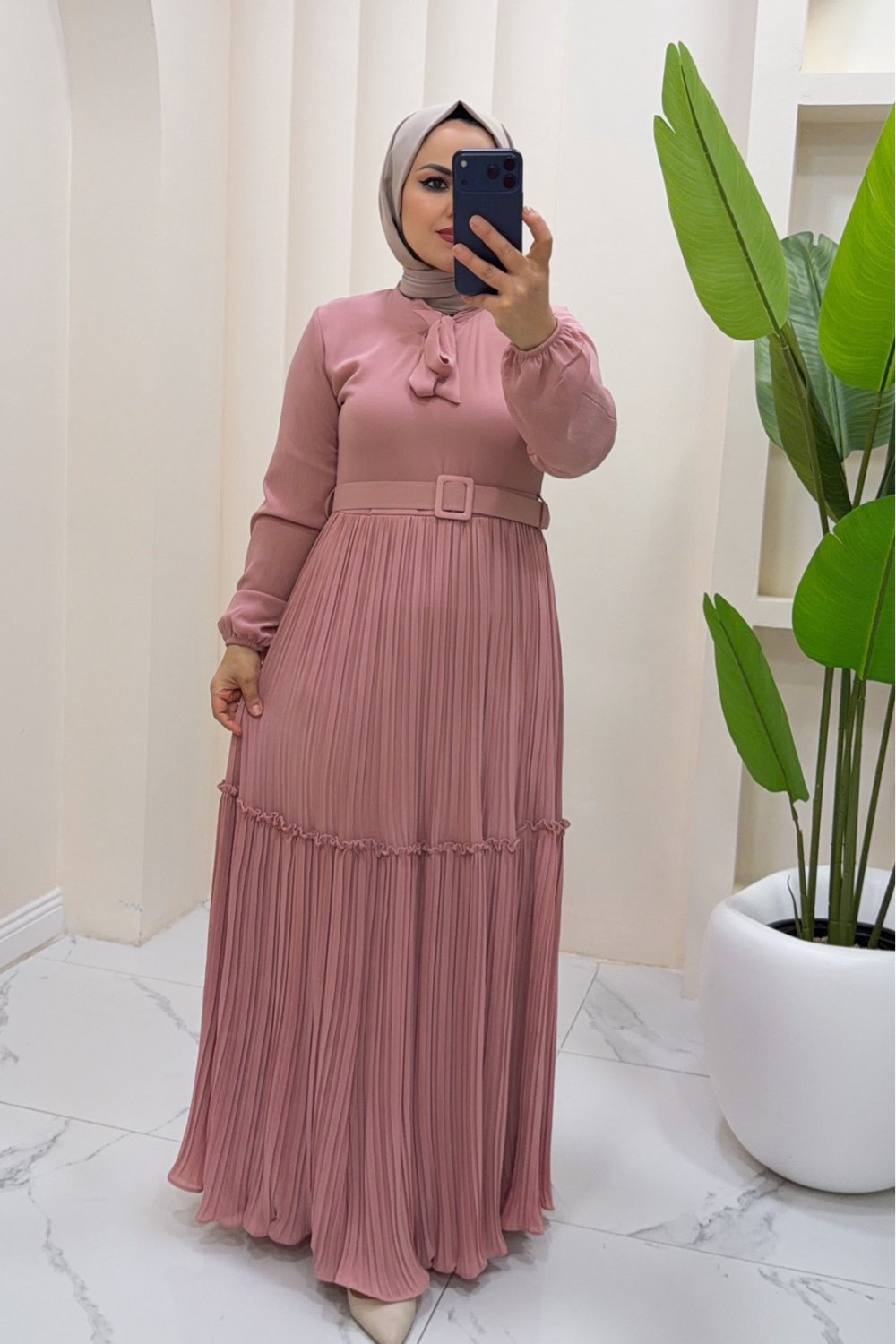 Elbise şifon Esmira Pembe