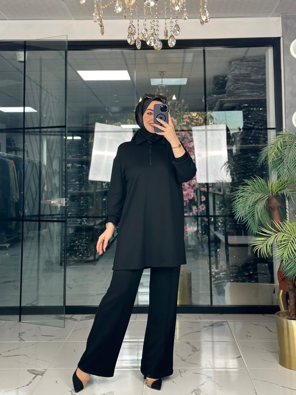 Kumaşı iki ipliktir. Tunik önü fermuarlıdır. Pantolon beli lastiklidir.