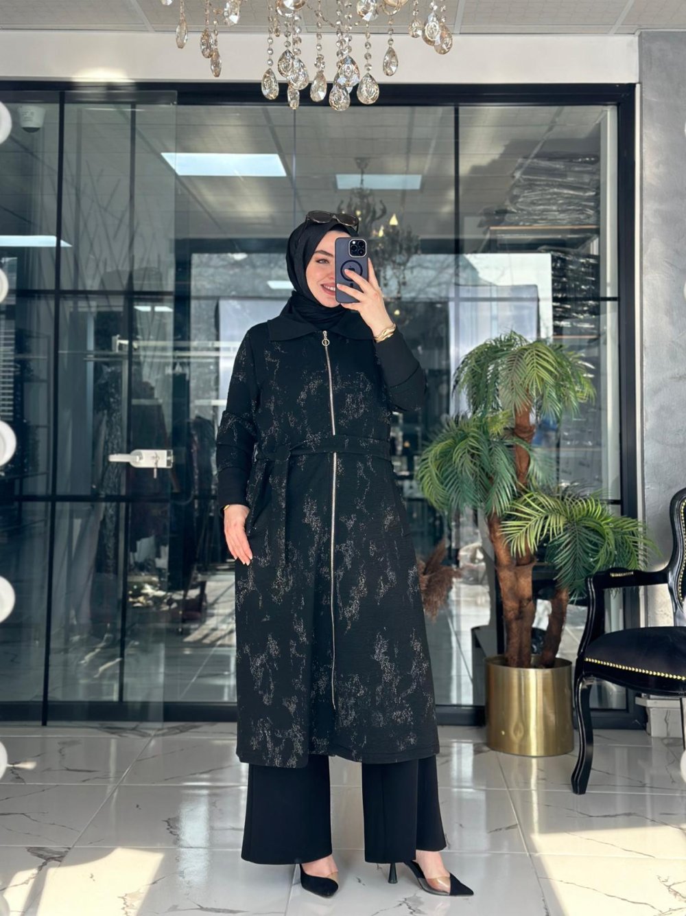 Kumaşı desenli dokuma kumaştır. Önü fermuarlıdır. Seyyar kemeri vardır.