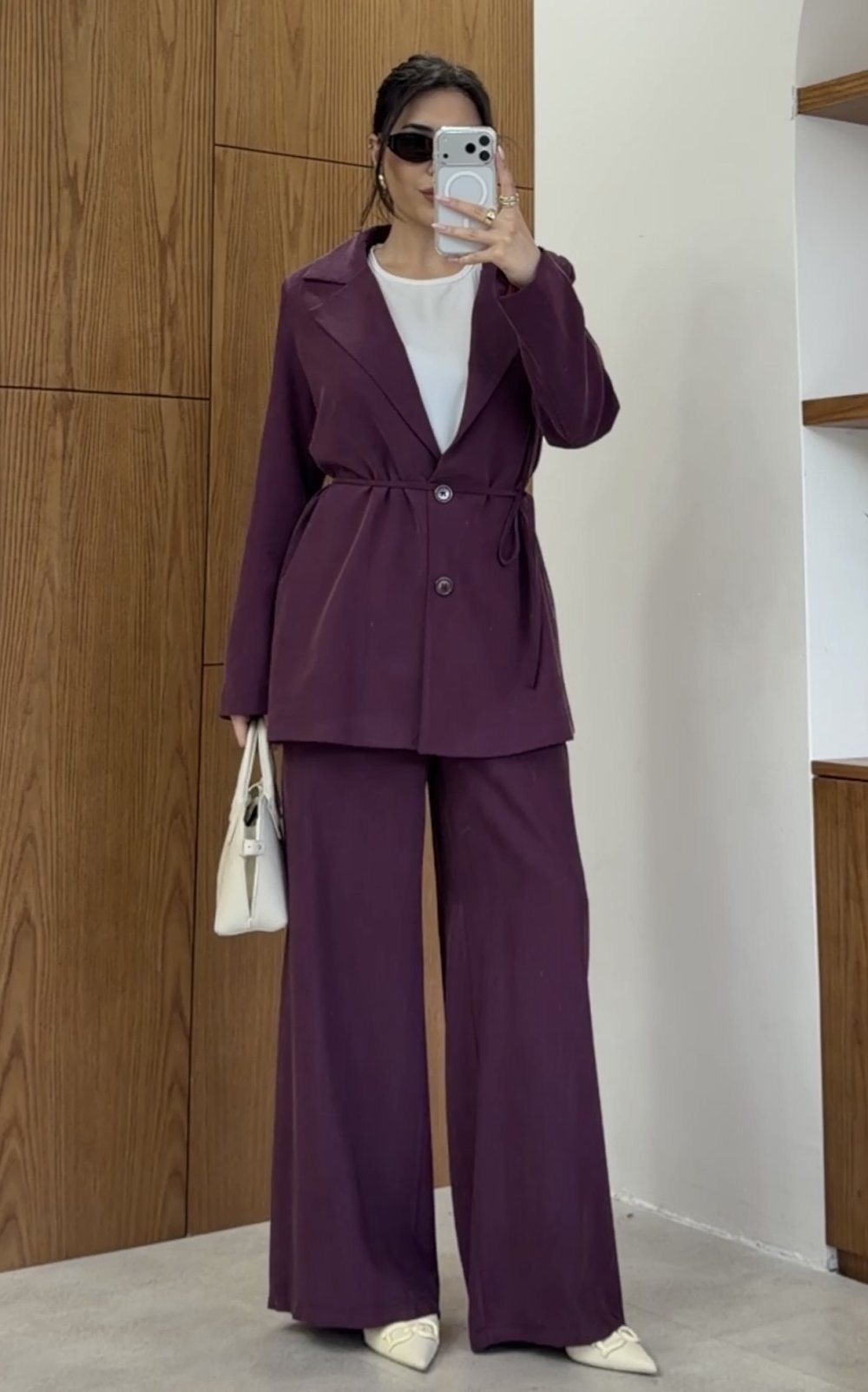 Esin Pantolonlu Takım Mürdüm MÜRDÜM