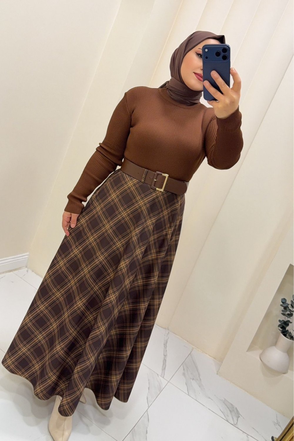 Etek ekose Melis Kahverengi