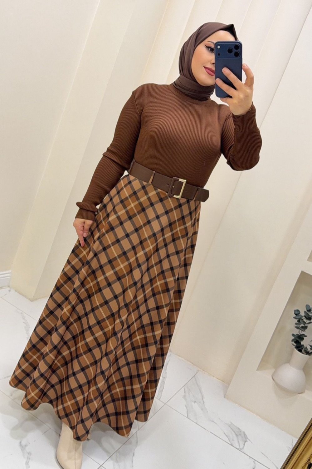 Etek ekose Melis Siyah Taba