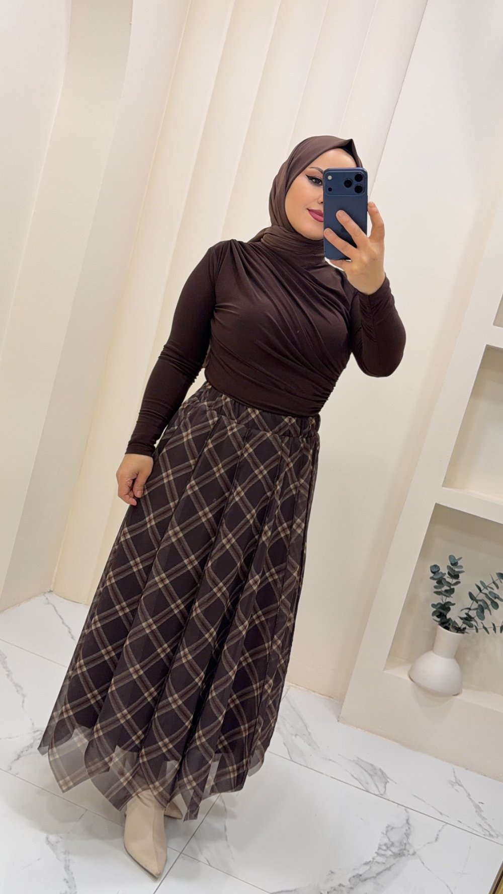 Etek şifon Afet Ekose Kahve