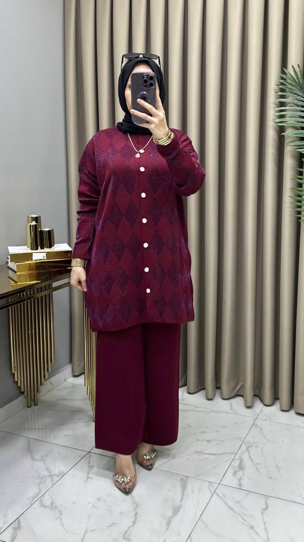Evin Hırkalı Takım Bordo Bordo