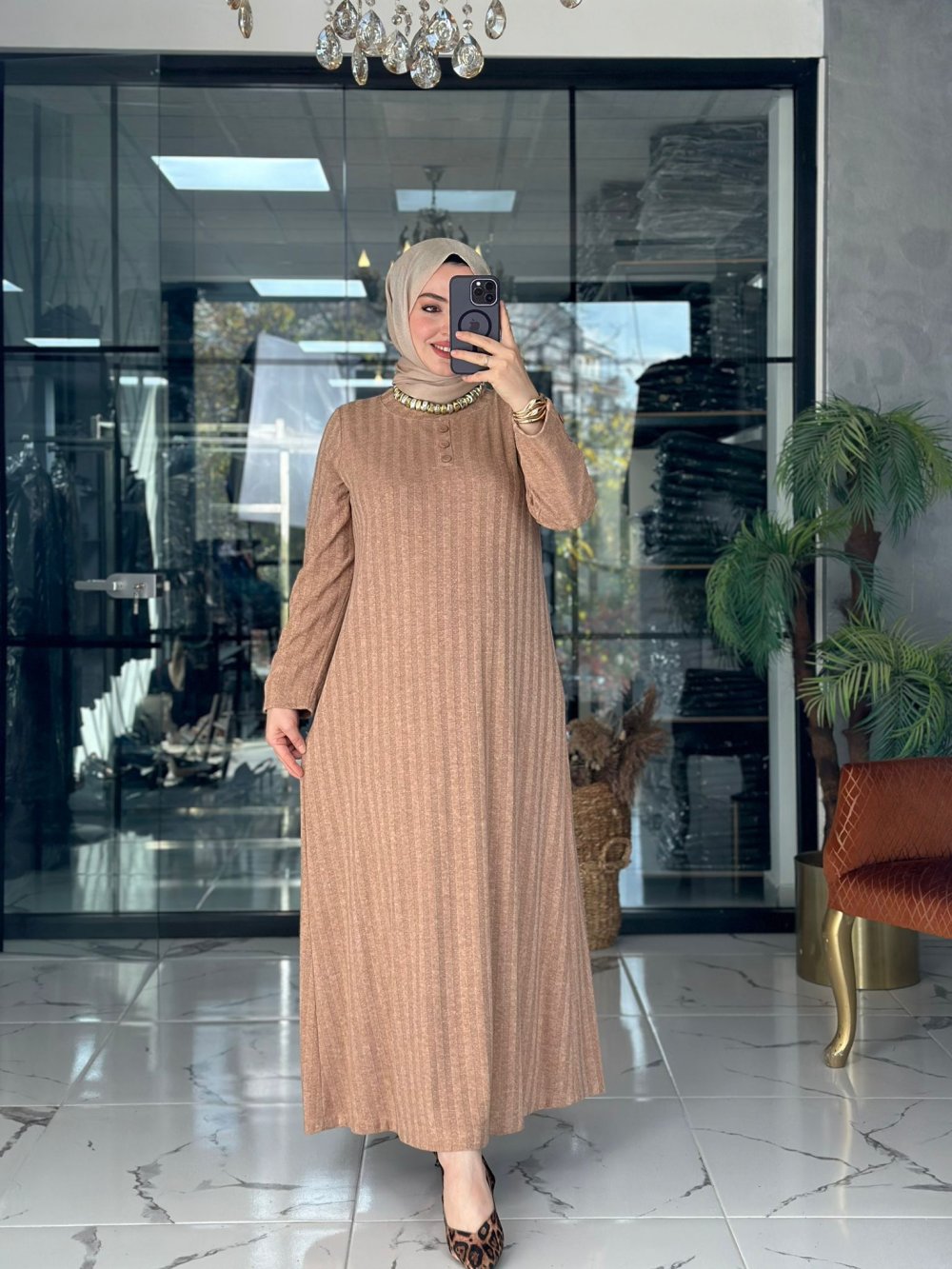 Kumaşı likralı örme kumaştır. Önündeki düğmeler süstür.