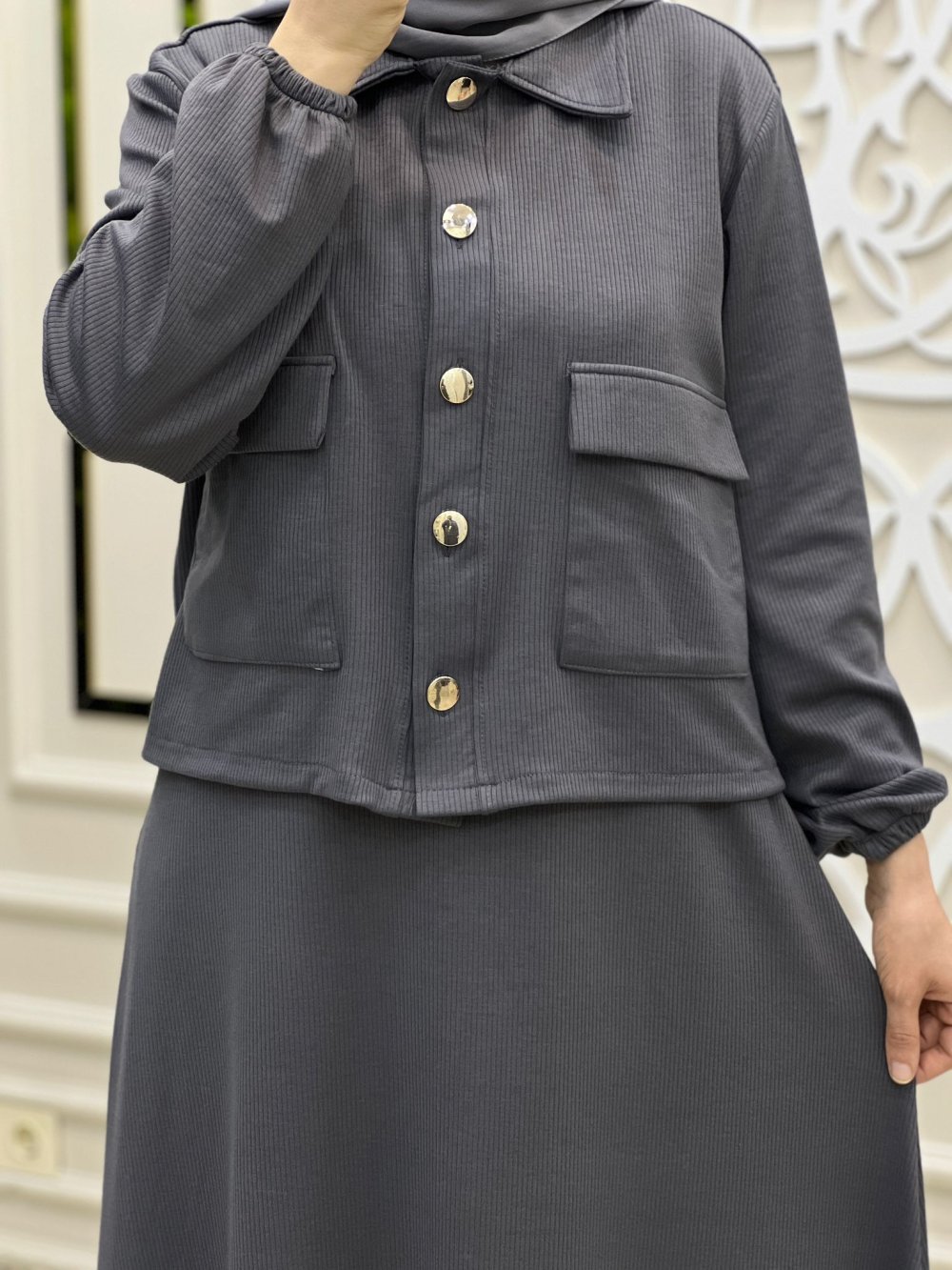Fitilli Triko Takım Gri