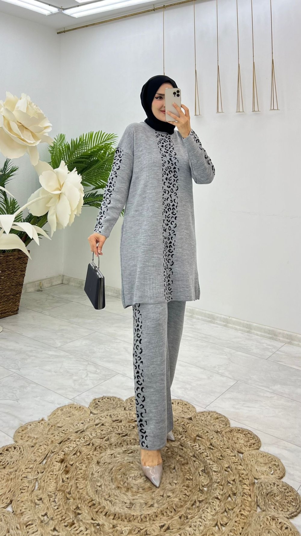 Gri Gülay Triko Takım Tesettür Giyim