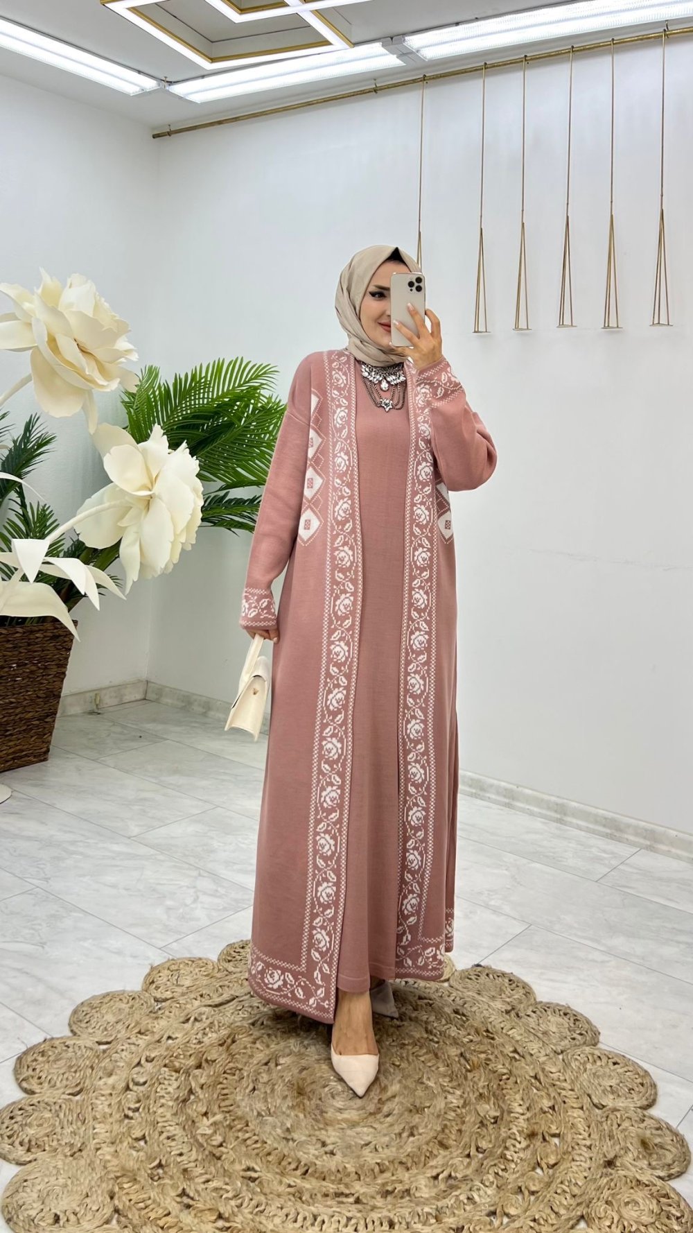 Gül Asya Triko Elbise Takım Tesettür Giyim