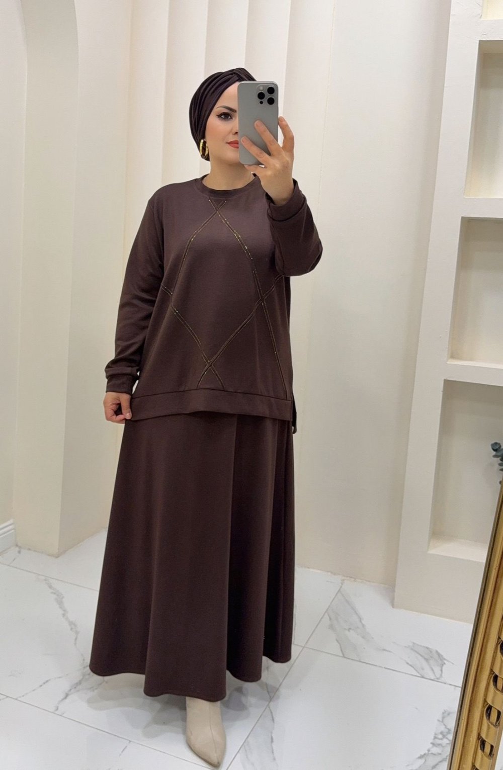 GÜLAY ETEKLİ TAKIM Kahverengi