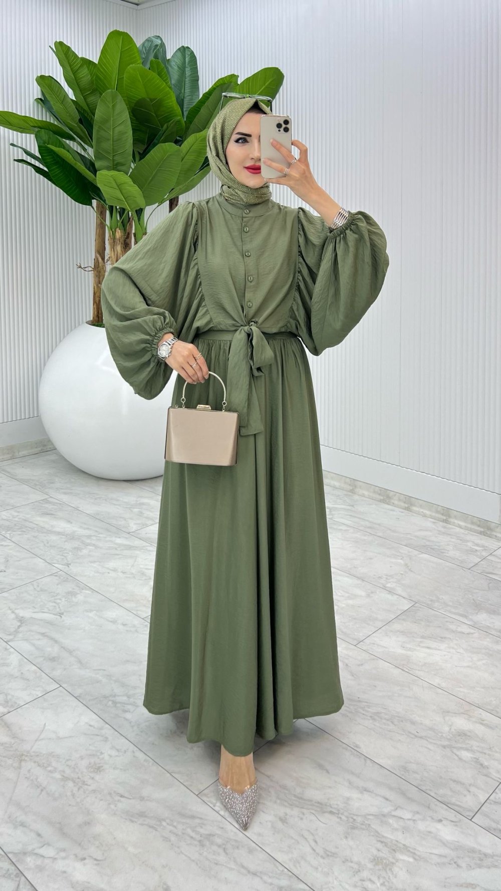 Haki Premium Yarasa Etek Takım Tesettür Giyim