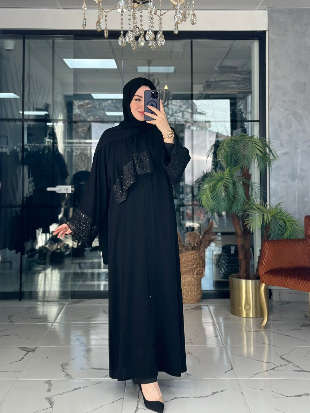 Halise Abaya Siyah Siyah