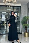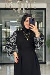 Krep Kumaş,Kuşaklı,Balon Kol İşlemeli, Kol Ağızı Lastiklidir