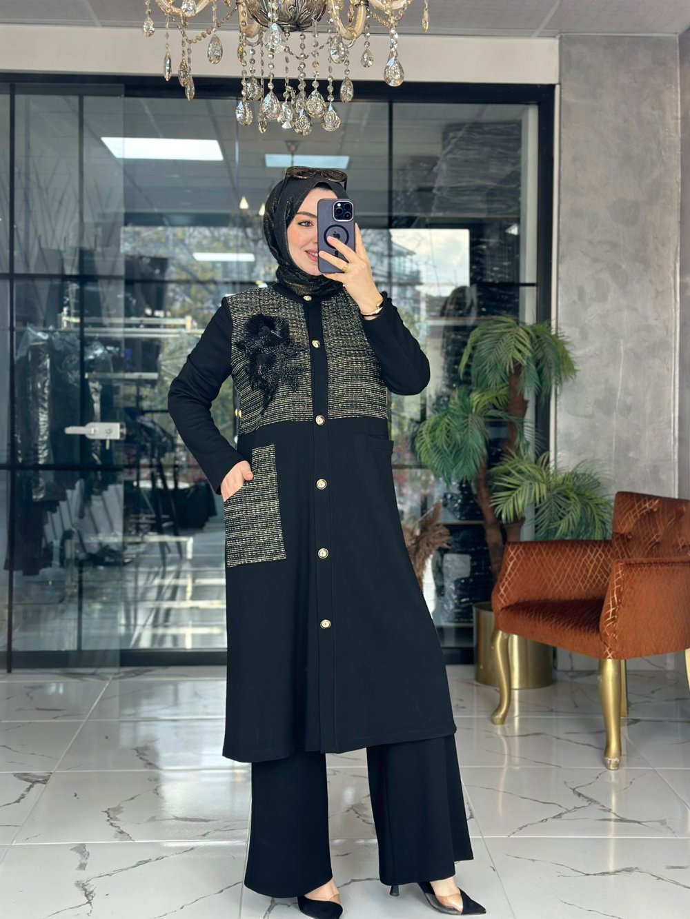 Kumaşı örme çeliktir. Önü fermuarlıdır. Cebi mevcuttur.